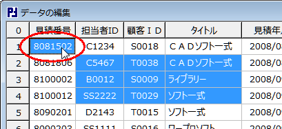 | G | セルを左ボタンでダブルクリックすると候補がウィンドウで表示されます。 入力する内容が候補にあれば選択することで、入力作業を軽減できます。 内容をキーボードで入力した時も候補は表示されます。 | |