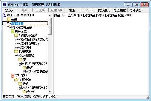 「式まとめて編集」を使うと、いろいろな部分に設定された式を表単位でまとめて編集することができます。