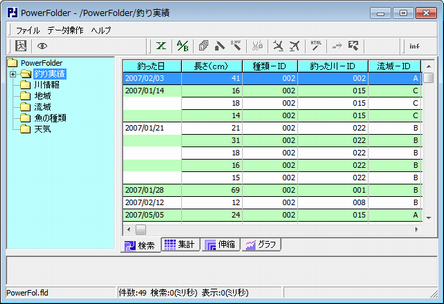| 釣った日 | 関連付けを図式を見やすくするために表「釣り実績」は縦方向に項目(カラム)が並べてあります。 | |||||||