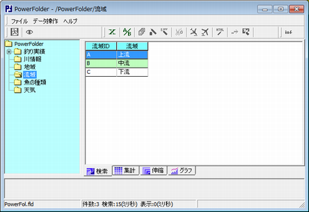 | 流域−ID | <-(3)-> | 流域ID | 流域名 | |||||