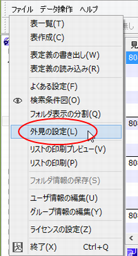 結果表示・タブ 検索・集計結果表示領域の設定です。 「見出しの色」、「データの色1」、「データの色2」ボタンのクリックで「色の設定」を開くか、右隣のドロップダウンリストのクリックで色の一覧を表示させるかして色を選びます。 「見出しの色」は最上部の見出しの背景色です。 「データの色1」、「データの色2」は見出しから下のデータ行の背景色で、色1と色2で交互に塗られます。 「フォント」ボタンのクリックで「フォント」が開きます。 見出しとデータのフォントの設定です。 |