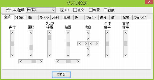 「詳細設定」を選ぶと「グラフの設定」ウィンドウが開き、色々な設定ができます。