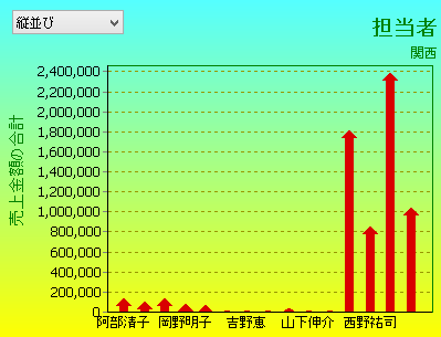 例えば集計が以下のように「地区」の下に「担当者」と「売上日」、それぞれで「売上金額の合計」が設定していると上のように「関西」のグラフ上でメニューで「詳細」が有効になります。
