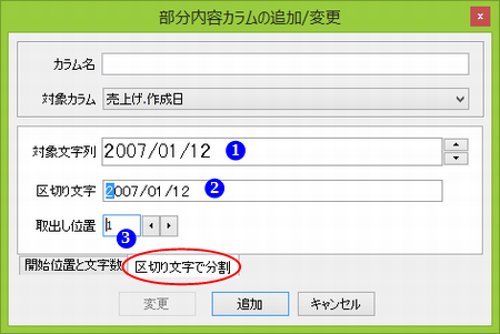 部分内容を取り出す対象となるカラムです。 |
