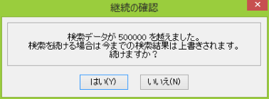 検索表示の際に、検索データが50万件を超えるたびに下記の確認メッセージが表示されます。