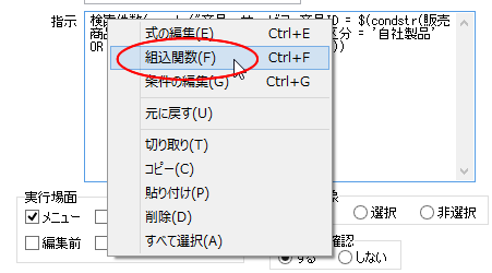 | 組込関数 | 組込み関数の編集ウィンドウを開きます。 | ||