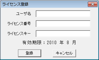 ライセンス番号とライセンスキーを入手しましたら「ファイル」メニューから「ライセンスの設定」を選び、「ライセンスの登録」ウィンドウを表示し登録してください。